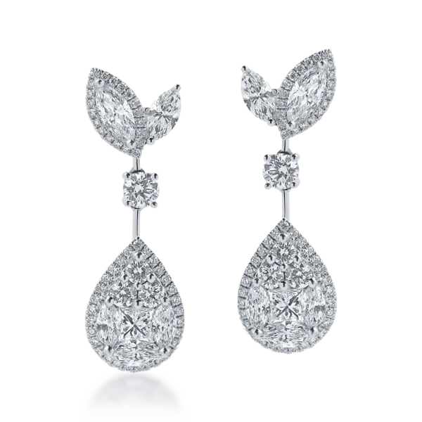 Cercei lacrima din aur alb cu diamante de 3.4ct