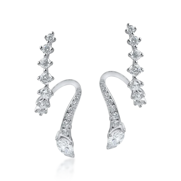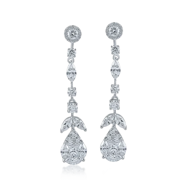 Cercei lungi din aur alb cu diamante marquise si rotunde de 1.18ct