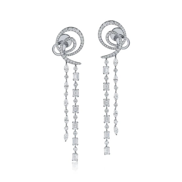 Cercei lungi din aur alb cu diamante de 5.5ct