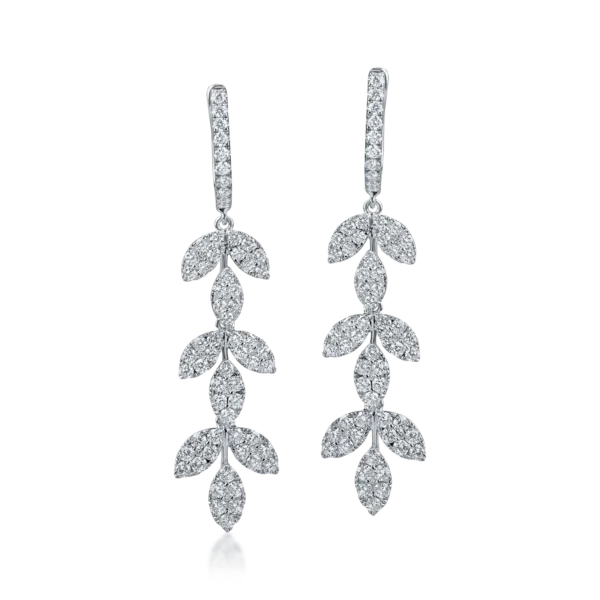 Cercei lungi din aur alb cu diamante de 2.8ct