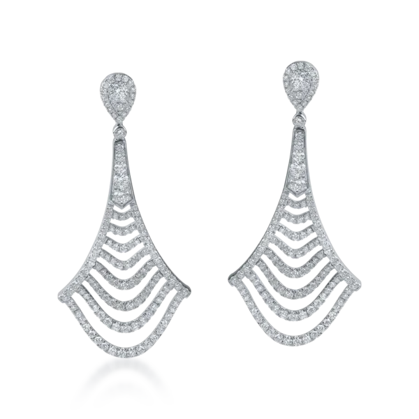 Cercei lungi din aur alb cu diamante microsetting de 1.8ct