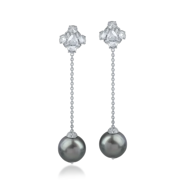 Cercei lungi din aur alb cu perle de cultura de 19.2ct si diamante de 1.8ct