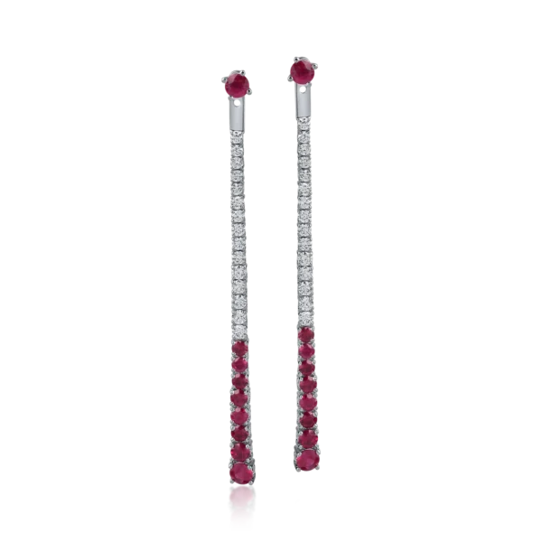 Cercei lungi din aur alb cu rubine de 1.4ct si diamante de 0.7ct