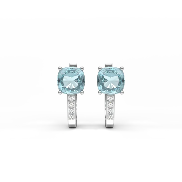 Cercei on ear din aur alb cu topaze swiss blue square de 1.3ct si diamante de 0.02