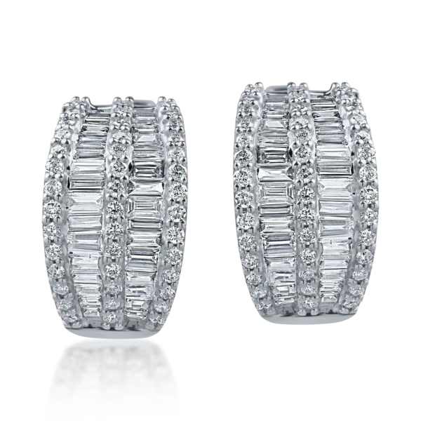 Cercei on-ear din aur alb cu diamante baguette si rotunde de 1.04ct