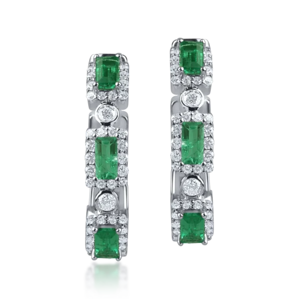 Cercei on ear din aur alb cu smaralde rectangulare de 0.7ct si diamante de 0.5ct