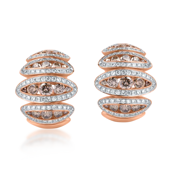 Cercei on ear din aur alb-roz cu diamante maro si incolore de 2.1ct