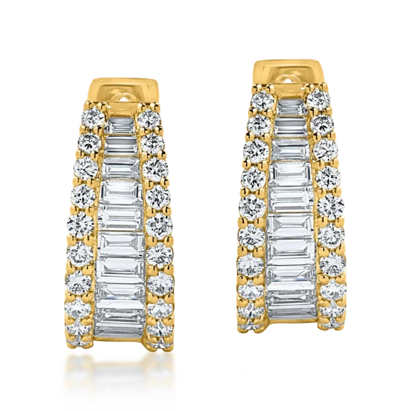 Cercei on ear din aur galben cu diamante baguette si rotunde de 1.9ct