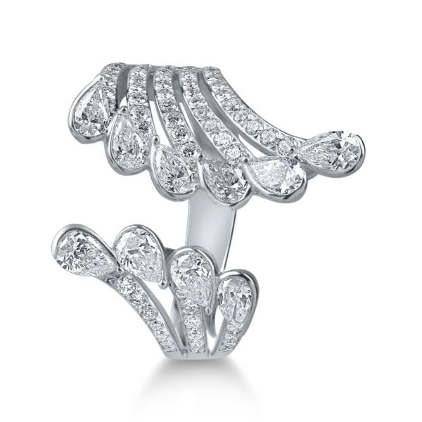 Inel deschis din aur alb cu diamante pear si rotunde de 1.7ct