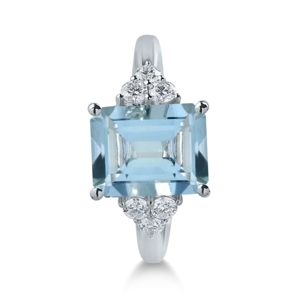 Inel din aur alb cu acvamarin octogonal de 3.2ct si diamante de 0.3ct