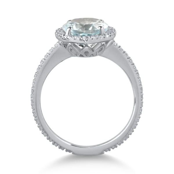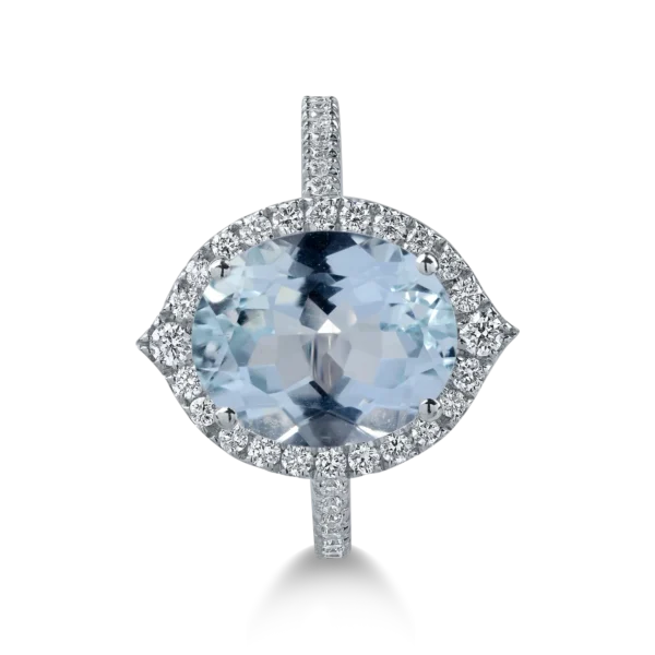 Inel din aur alb cu acvamarin oval de 2.2ct si diamante de 0.5ct