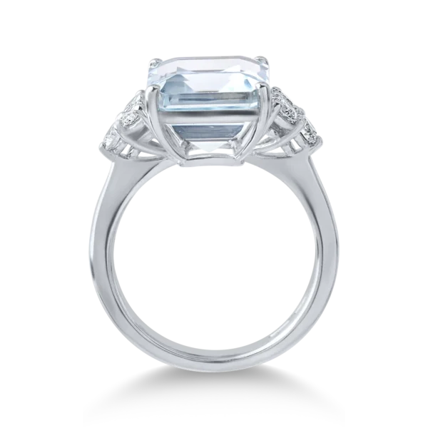 Inel din aur alb cu acvamarin octogonal de 4.2ct si diamante de 0.6ct