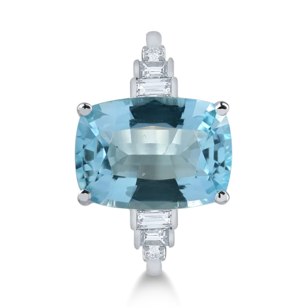 Inel din aur alb cu aquamarine rectangular de 5ct si diamante baguette si rotunde de 0.29ct