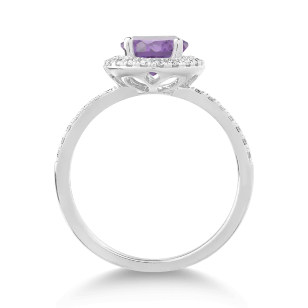 Inel din aur alb cu ametist oval de 1ct si diamante de 0.03ct