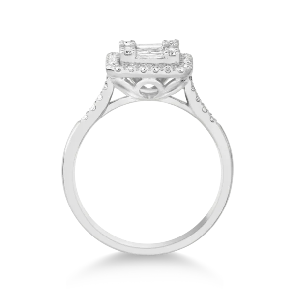Inel din aur alb cu diamant baguette de 0.4ct si diamante de 0.3ct