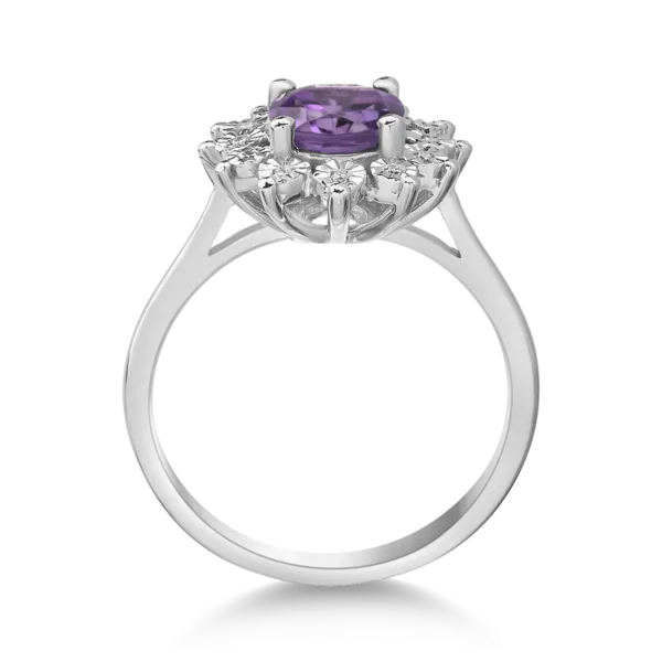 Inel din aur alb cu ametist oval de 2.1ct si diamante de 0.2ct