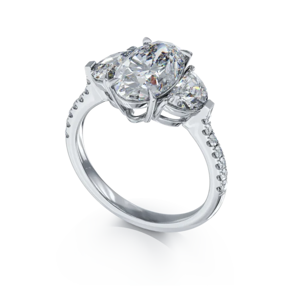 Inel din aur alb cu diamant oval de 2ct si diamante de 0.99ct
