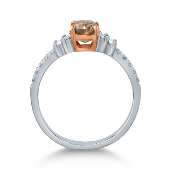 Inel din aur alb cu diamant maro de 1.01ct si diamante transparente de 0.28ct