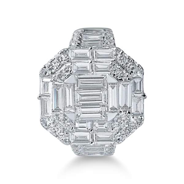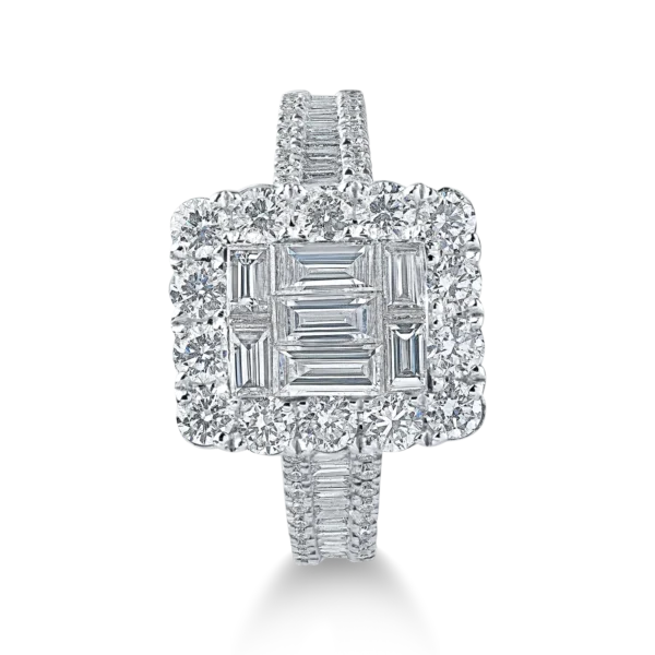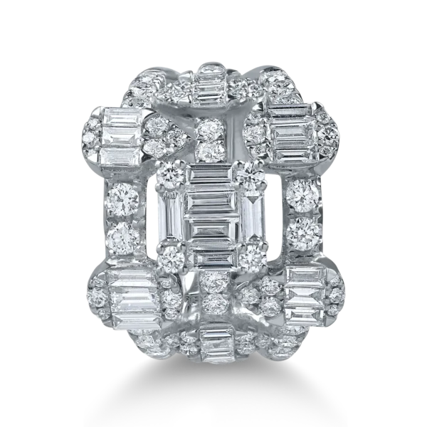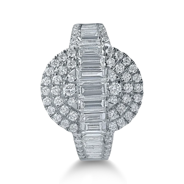 Inel din aur alb cu diamante baguette si rotunde de 1.8ct
