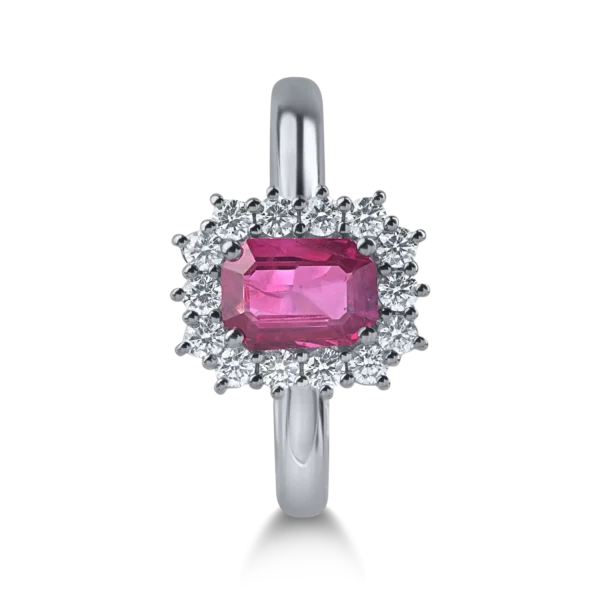 Inel din aur alb cu rubin octogonal de 1ct si diamante de 0.3ct