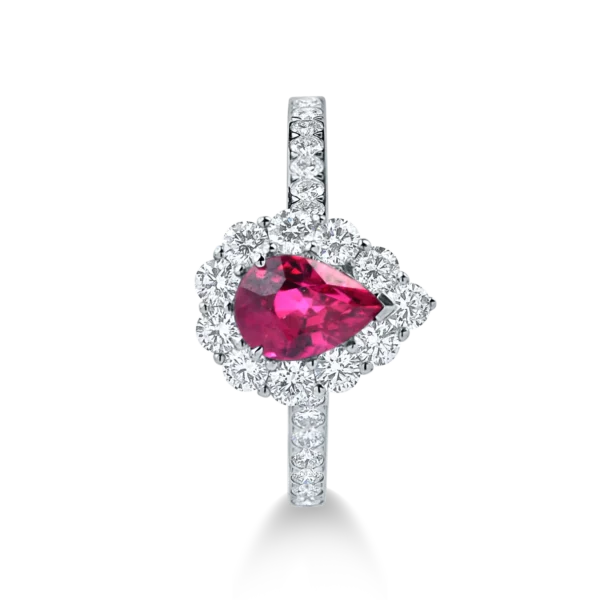 Inel din aur alb cu rubin pear de 0.68ct si diamante de0.55ct