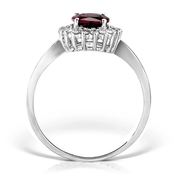 Inel din aur alb cu rodolit oval de 1.2ct si diamante de 0.2ct