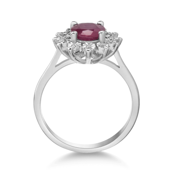 Inel din aur alb cu rubin oval de 1.6ct si diamante de 0.3ct
