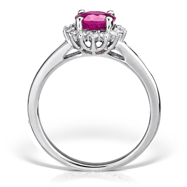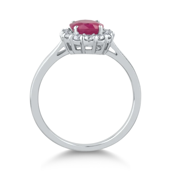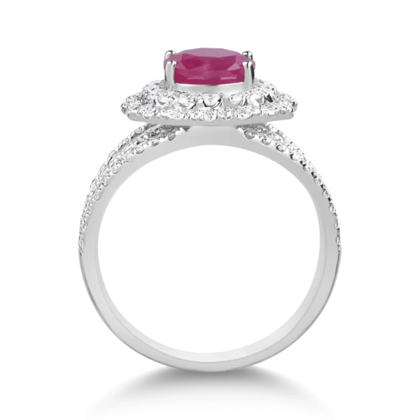 Inel din aur alb cu rubin oval de 1.7ct si diamante de 0.03ct