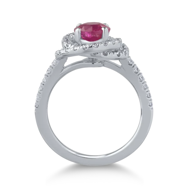 Inel din aur alb cu rubin pear si diamante de 1.8ct