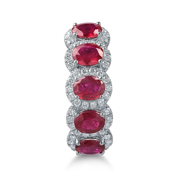 Inel din aur alb cu rubine ovale de 1.8ct si diamante de 0.4ct