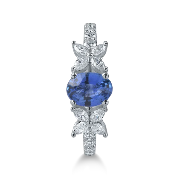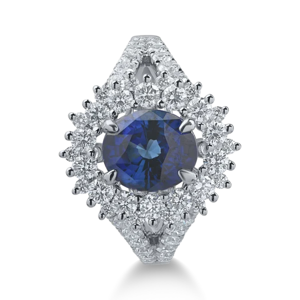 Inel din aur alb cu safir oval de 1.2ct si diamante de 1ct
