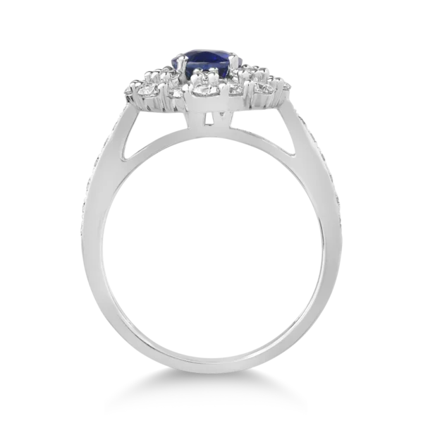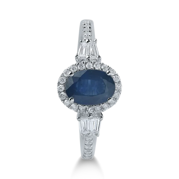 Inel din aur alb cu safir oval de 1.2ct si diamante de 0.6ct