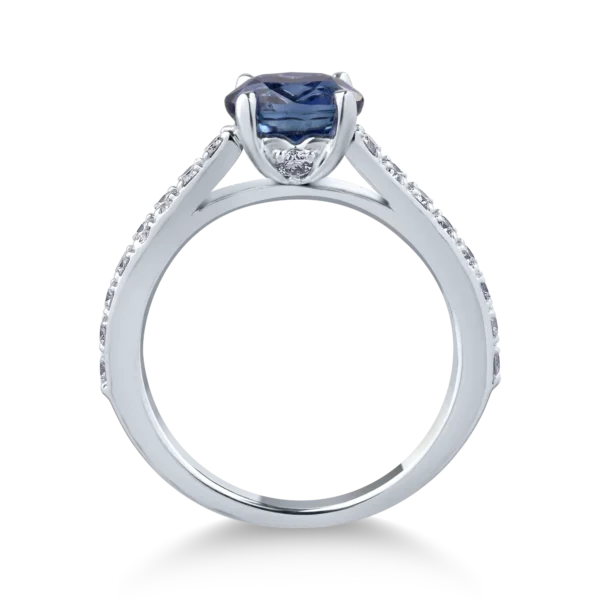 Inel din aur alb cu safir oval de 1.6ct si diamante de 0.4ct