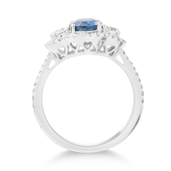 Inel din aur alb cu safir oval de 2.3ct si diamante de 1.3ct