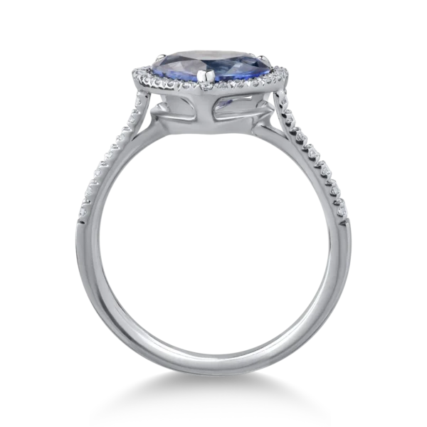 Inel din aur alb cu safir oval de 3.42ct si diamante de 1.62ct