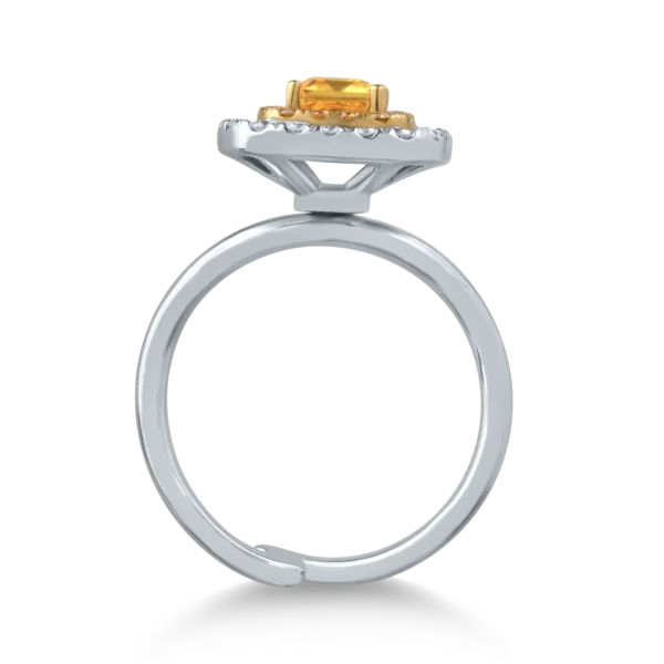 Inel din aur alb cu safir galben emerald de 1.4ct si diamante de 0.5ct