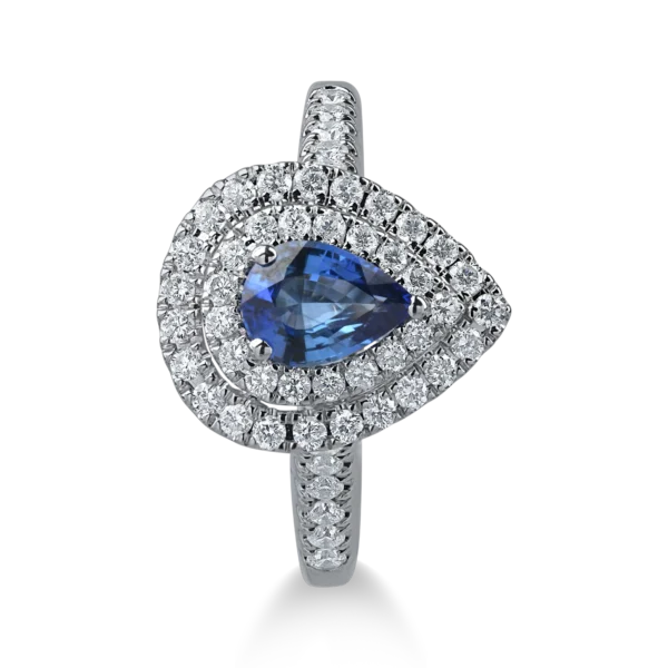 Inel din aur alb cu safir pear de 0.5ct si diamante de 0.3ct