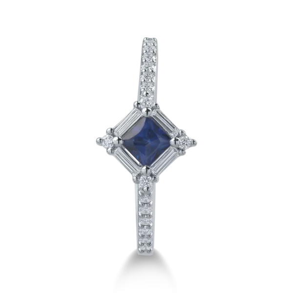 Inel din aur alb cu safir princess de 0.3ct si diamante de 0.18ct