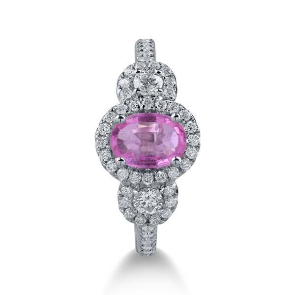 Inel din aur alb cu safir roz oval de 0.99ct si diamante de 0.5ct