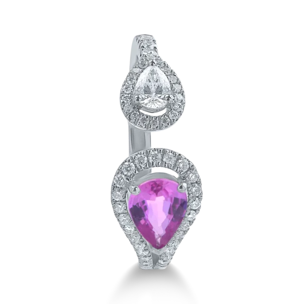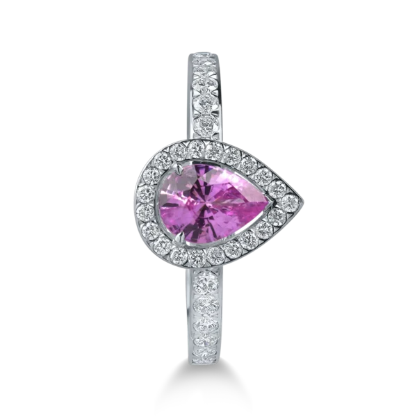 Inel din aur alb cu safir roz pear de 0.7ct si diamante de 0.4ct