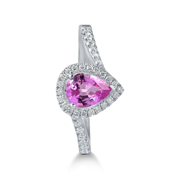 Inel din aur alb cu safir roz pear de 0.8ct si diamante de 0.2ct