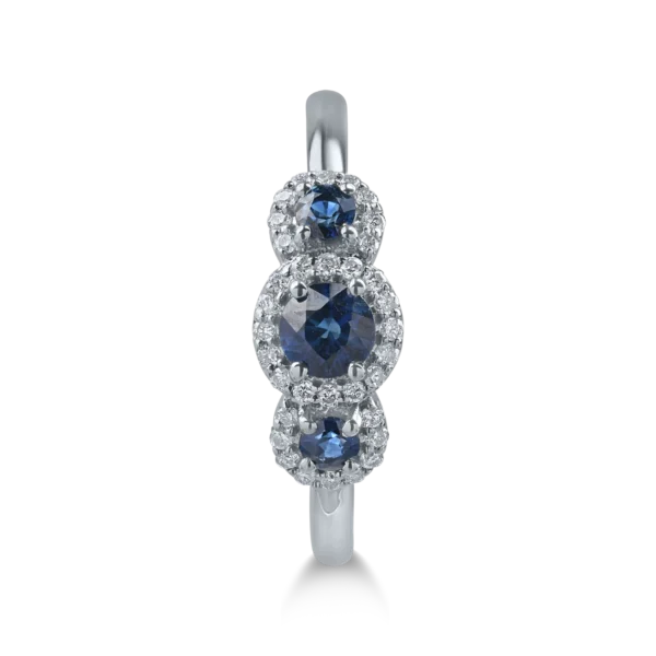 Inel din aur alb cu safire de 0.9ct si diamante microsetting de 0.3ct