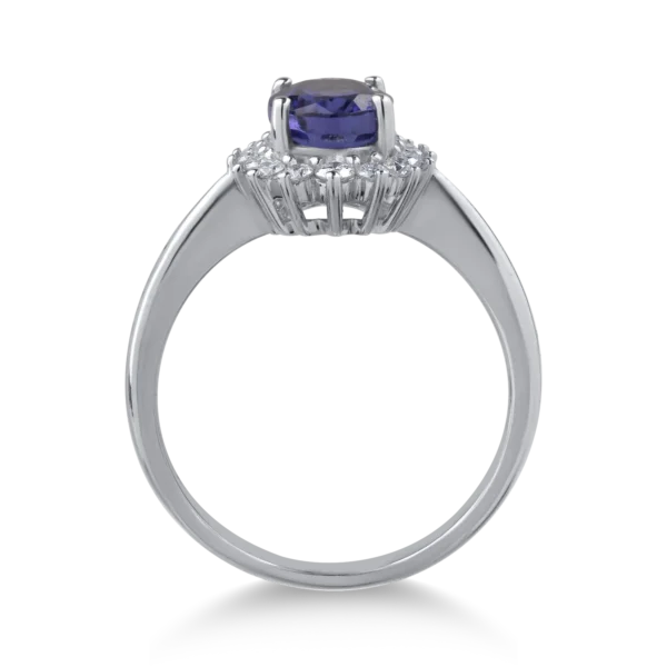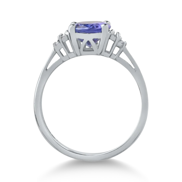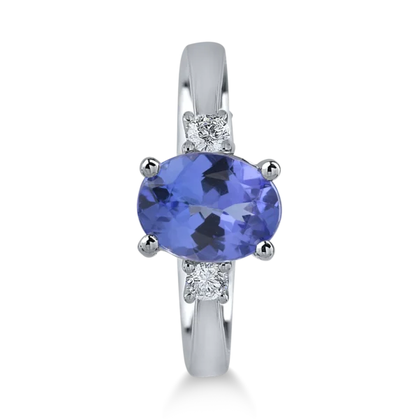 Inel din aur alb cu tanzanit oval de 1.6ct si diamante de 0.1ct