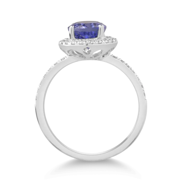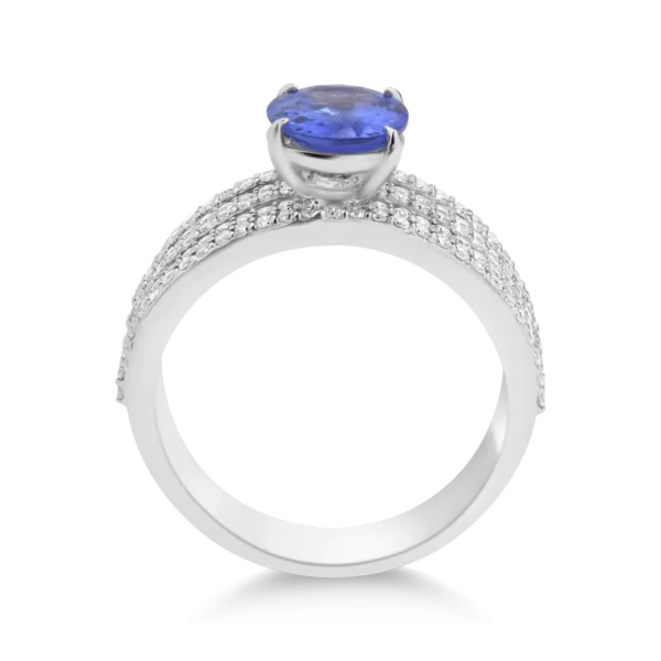 Inel din aur alb cu tanzanit oval de 2.3ct si diamante de 0.07ct