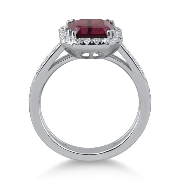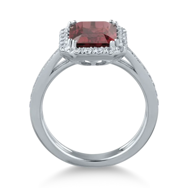 Inel din aur alb cu turmalina roz emerald de 3ct si diamante de 0.4ct