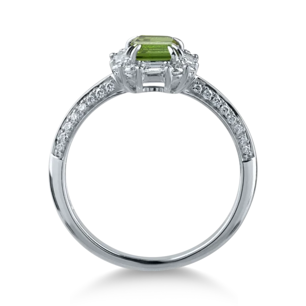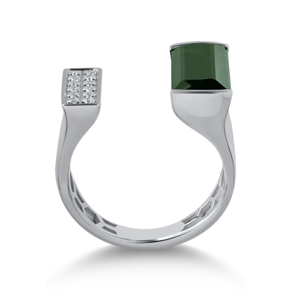 Inel din aur alb cu turmalina verde de 1.12ct si diamante de 0.49ct