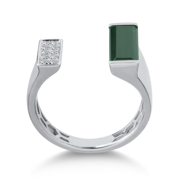 Inel din aur alb cu turmalina verde emerald de 1.7ct si diamante de 0.08ct