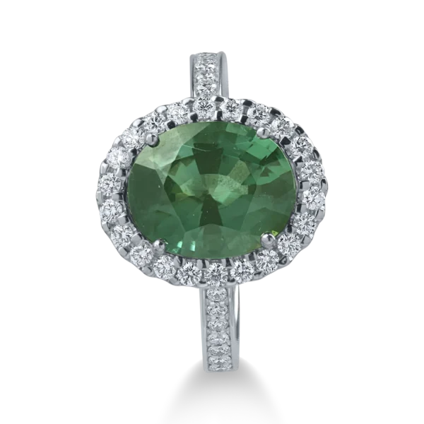 Inel din aur alb cu turmalina verde ovala de 3.1ct si diamante de 0.4ct