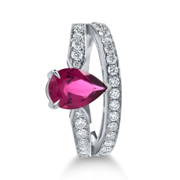 Inel din aur alb cu un rubelit pear si diamante de 1.8ct