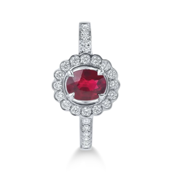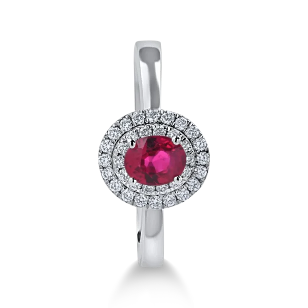Inel din aur alb cu un rubin oval si diamante de 0.7ct